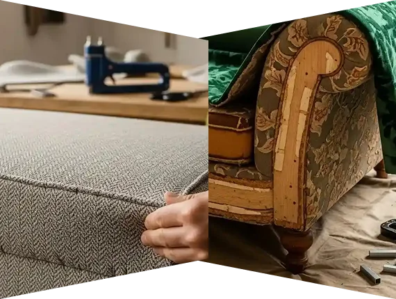 Our upholstery service for any type of sofa is taken care of by an expert team of sofa upholsterers. They will remove any old coverings and foam infills to inspect the frame. They do careful frame repairs and replace the foam in a precision method to ensure proper upholstery coverage.
